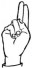 На ћирилици написано ЊЕГОСЛАВ ЛАПЧЕВИЋ састоји се из 16 слова [?]. Исписано ћириличном једноручном азбуком за глувонеме: